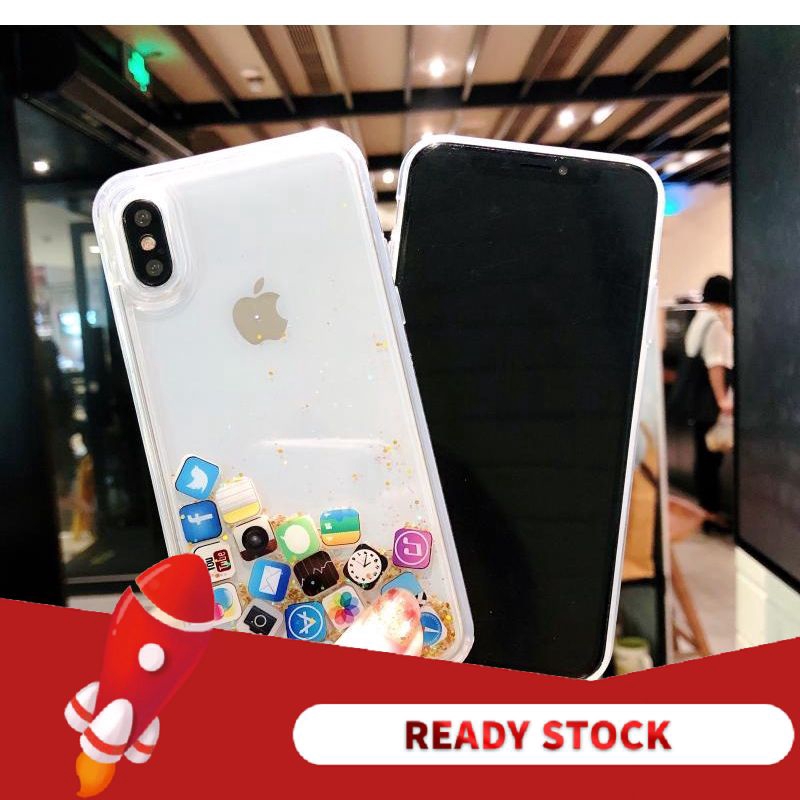 Glitter Liquid Quicksand Case For Iphone 7 8 6 Xr X Dynamic Cute App Icons Soft Silicon Cover Shell Shopee Indonesia
