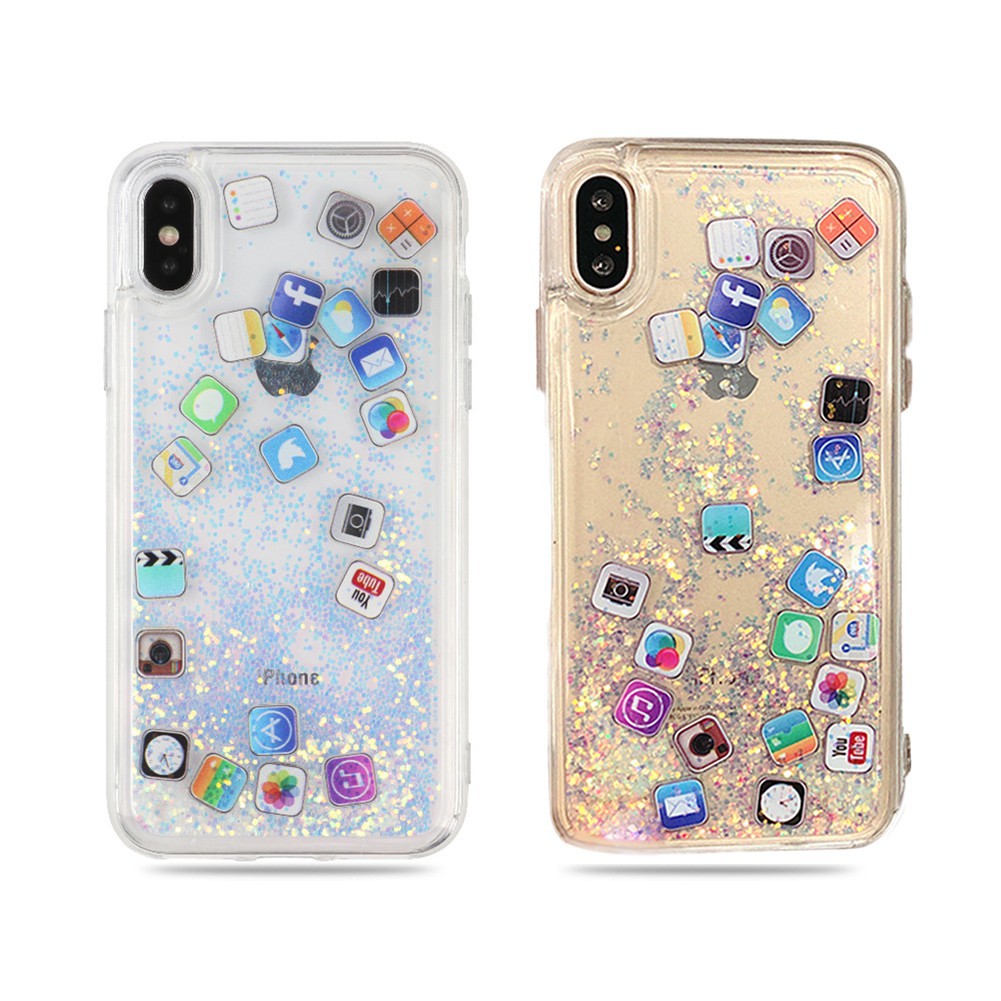 Cute Amusing Mobile Apps Icon Case Cover For Iphone 7 8 6 6s Plus X Xr Xs Max Glitter Liquid Quicksand Transparent Phone Cases Onshopdeals Com